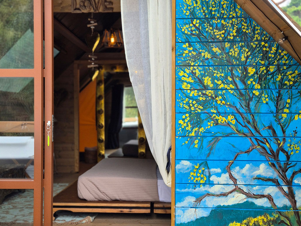 Per chi cerca un’avventura ancora più emozionante, due tende sono sospese tra le fronde degli alberi a 3 metri di altezza, complete di bagno privato, frigo, aria condizionata, Wi-Fi, veranda e accesso a una jacuzzi condivisa. Il parcheggio è incluso.